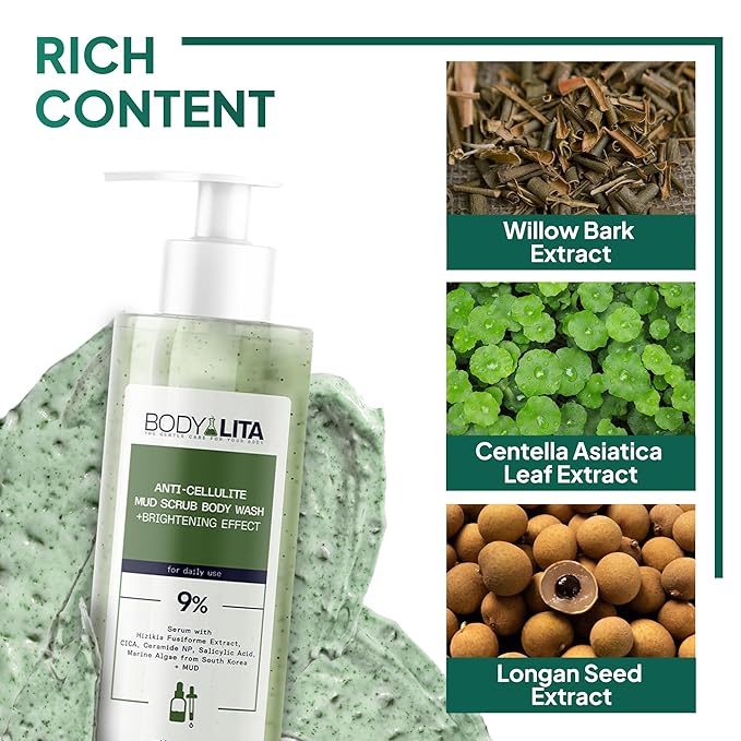 Anti Cellulite Mud Scrub Body Wash, Reduces Cellulite, Gentle Exfoliating, Improves Skin Texture, Provides a Smoother Look, 5.07 Fl Oz (6)
