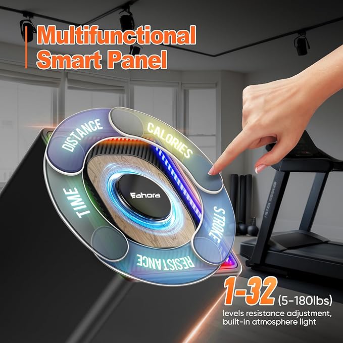 - ๐ ใSmart Digital Display &Adjustable Mechanical Resistanceใ:Turn dial to choose 32 resistance levels (Level 1=light, Level 32=hardest).Screen provides real-time feedback on crucial workout metrics such as time,distance, calorie consumption.Supports users up to 485 lbs (220 kg).