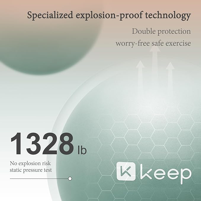 - Anti-Bust & Worry-Free -- The KEEP Fitness Ball features anti-burst technology with a honeycomb microporous foaming structure. It has passed strict explosion-proof test, with an ultra-high anti-burst rating of 1300 lbs. In the event of puncture by sharp objects, the ball deflates slowly rather than bursting, ensuring your safety is always protected