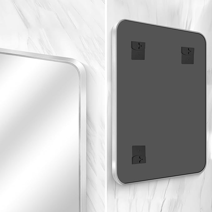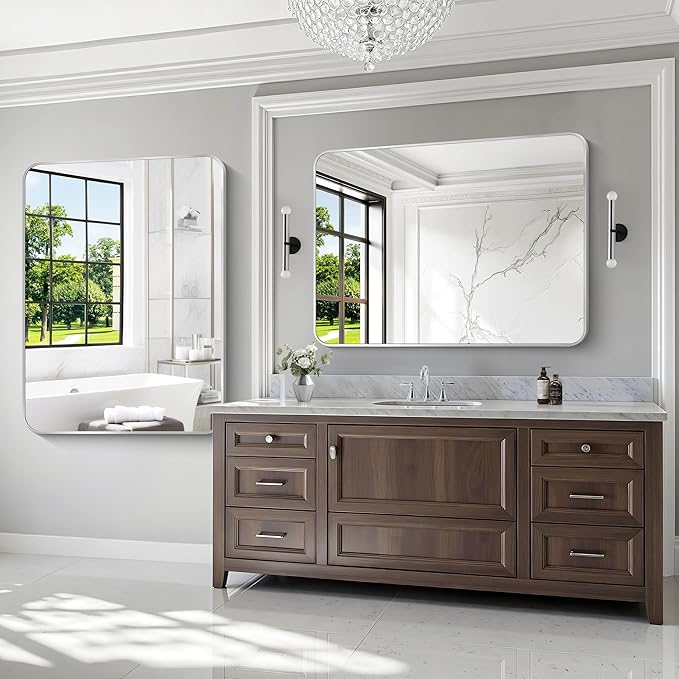 - ROUNDED CORNER DESIGN :The 36x48 inches mirror features an elegant rounded corner design and measures 36" x 48" Its unique shape adds a touch of sophistication and upscale beauty to your home.