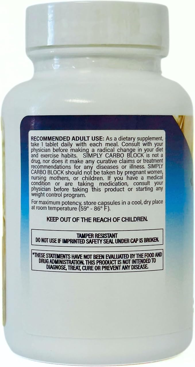 Simply Carbo Block| Blocks Carbohydrates and Sugars| Increase Metabolism| Promotes Weight Loss| 60 Count, Herbal Proprietary Blend - Gymnema Leaf, Chromium, Kidney Bean, Spirulina, Vitamin C