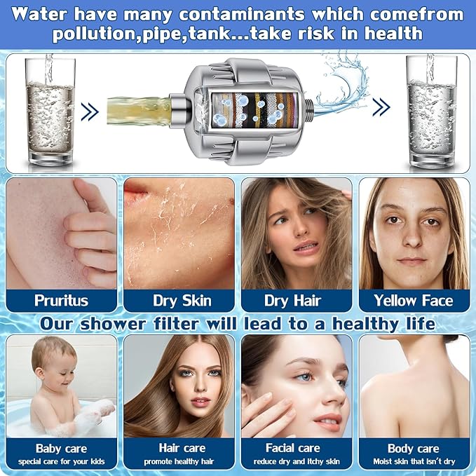 - Softening Hard Water and Take Care of Ourselves - Using a 20 stage filter cartridge softens hard water, reduces limescale deposits, and takes care of the health of us and our families, especially for people with sensitive skin and dry hair