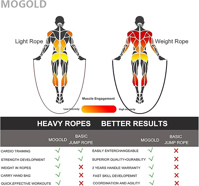 - ๐ง Professional Weight Adjustment System 3 precision-weighted ropes (1/5LB/1/4LB/1/2LB) with modified PVC-coated 49-strand steel wire construction cater to all fitness phases from fat-burning HIIT to explosive boxing training. The 15-second quick-swap design delivers 60% higher efficiency than traditional jump ropes.