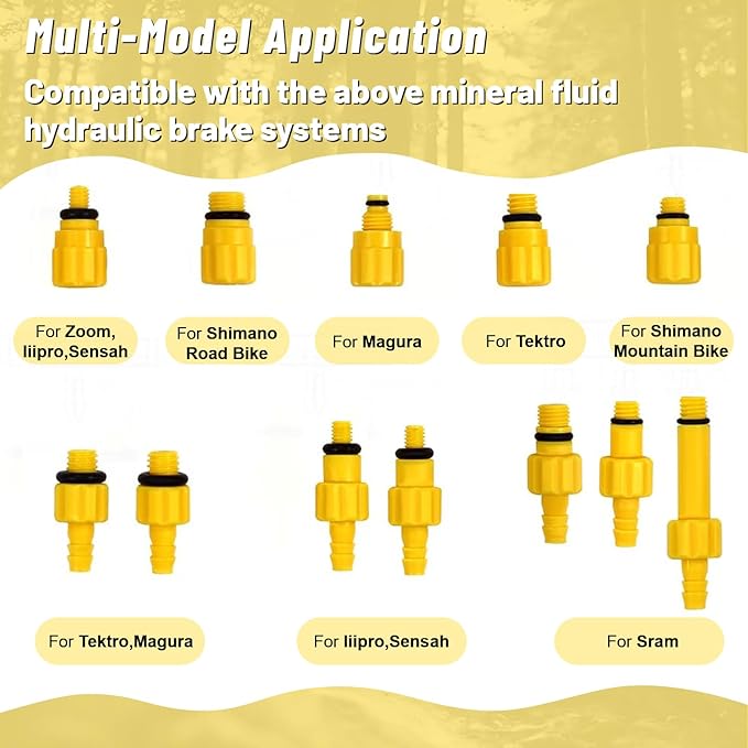 - Multi-Model Application: The brake bleed kit comes with 12 adapters, fit a wide range of bike models, including mountain bikes and road bikes.Compatible with SHIMANO, TEKTRO, MAGURA, TRP and most mineral fluid hydraulic brake systems