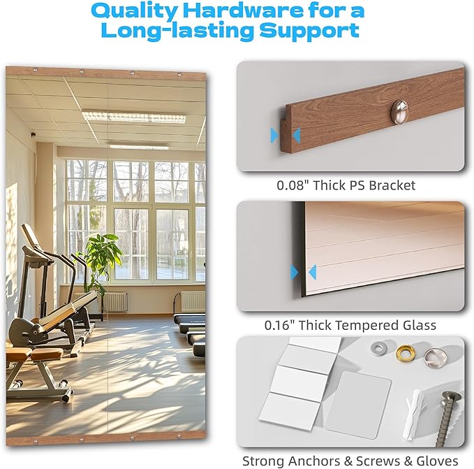 - Clear Reflection and Safe Design:These home gym mirror are made of HD float glass. They can show you clearly and are strong. The edges of the wall mirror are polished for safe use
