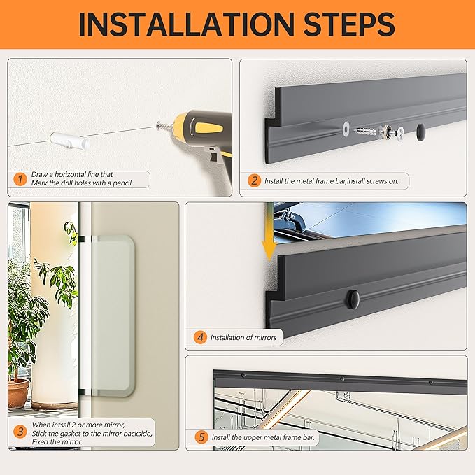 - EASY & STURDY INSTALLATION:Mounting this wall-mounted gym mirror is easy with the accessory J-bracket. The sturdy J-bracket not only holds the mirror securely to the wall, but also adds a decorative touch.For detailed installation steps, simply refer to the user manual. All necessary hardware is included