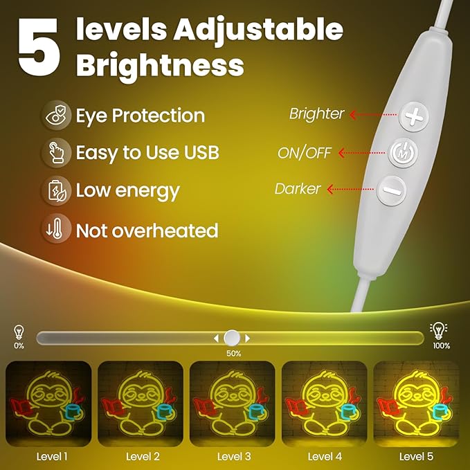 - Easy USB Power & Safe to Use Powered via USB with low voltage for energy efficiency and safety. Unlike traditional glass neon signs, it’s shatterproof, low-heat, and perfect for indoor use.