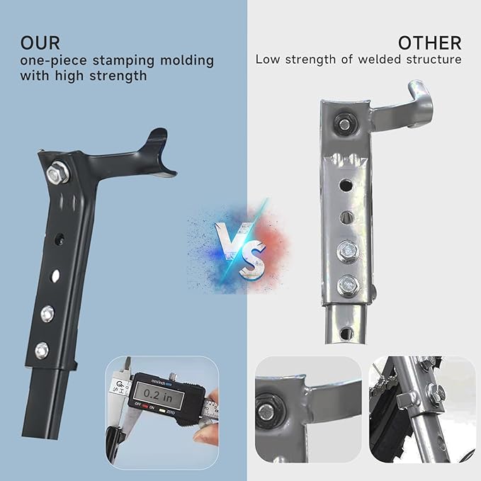 - 𝐓𝐡𝐢𝐜𝐤𝐞𝐧𝐞𝐝 20% 𝐇𝐢𝐠𝐡 𝐂𝐚𝐫𝐛𝐨𝐧 𝐒𝐭𝐞𝐞𝐥 4mm reinforced brackets (20% thicker than competitors) with anti-corrosion coating, supporting 300LB weight limit for adult riders and cargo bikes.