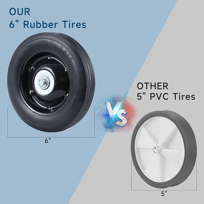 - 𝐀𝐥𝐥 𝐓𝐞𝐫𝐫𝐚𝐢𝐧 𝐑𝐮𝐛𝐛𝐞𝐫 𝐖𝐡𝐞𝐞𝐥𝐬 1.5" wide treaded rubber wheels provide 40% better grip on pavement/gravel/grass vs plastic/PVC competitors.