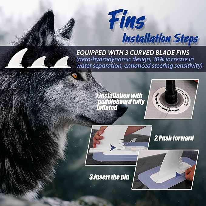 - 【Full of supporting equipmen】 With single and dual purpose paddle, octopus wrench, manual pump, 10L translucent waterproof bag, 3 machete pin fins, patch, paddleboard backpack, leash, to meet the needs of competition, leisure and multi-scenario.