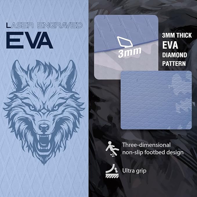 - 【Laser engraved EVA】 Surface laser engraved 3mm thick EVA diamond pattern, high coefficient of friction (≥0.6), wet still maintain a strong grip, with three-dimensional non-slip foot pad design, to avoid slipping and falling, the safety coefficient of pull full.