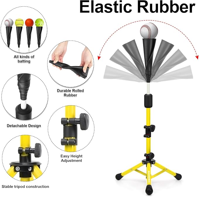 - 1.【STURDY TRIPOD STAND】batting tee for kids, Sturdy tripod configuration provides stability.