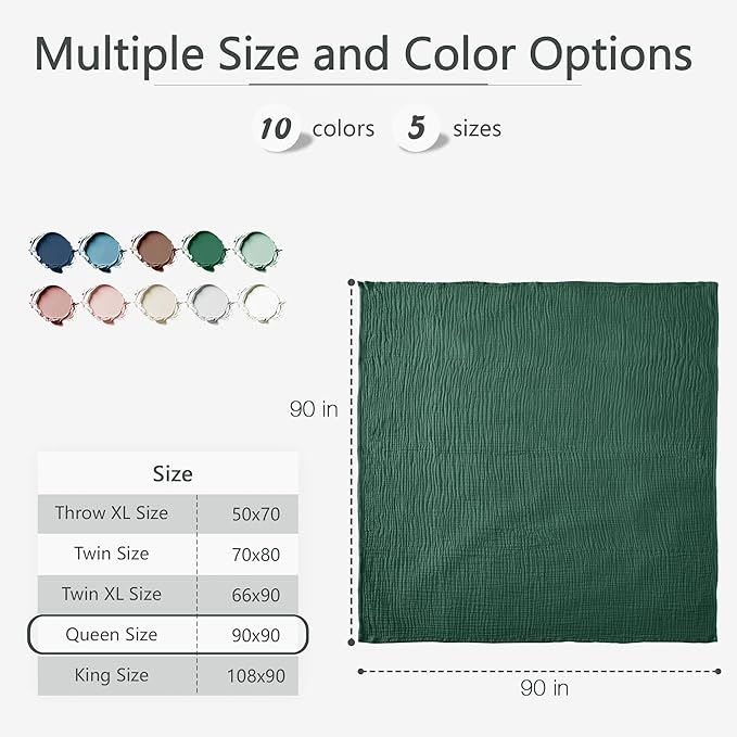 - Trendy colors: We offer the comfy gauze blanket in many colors to better match your bedroom, living room, or individual style. Features a natural wrinkle designs that complements farmhouse décor