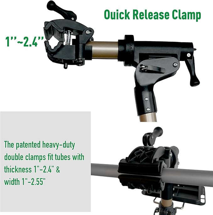- ROTATABLE HEAD: Smart design, the head is 360-degree rotatable by turning the quick-release knob. The teeth and clamp are both well-made and heavy-duty. This bike stand could hold bikes up to 50kg or 110lbs at any angle.
