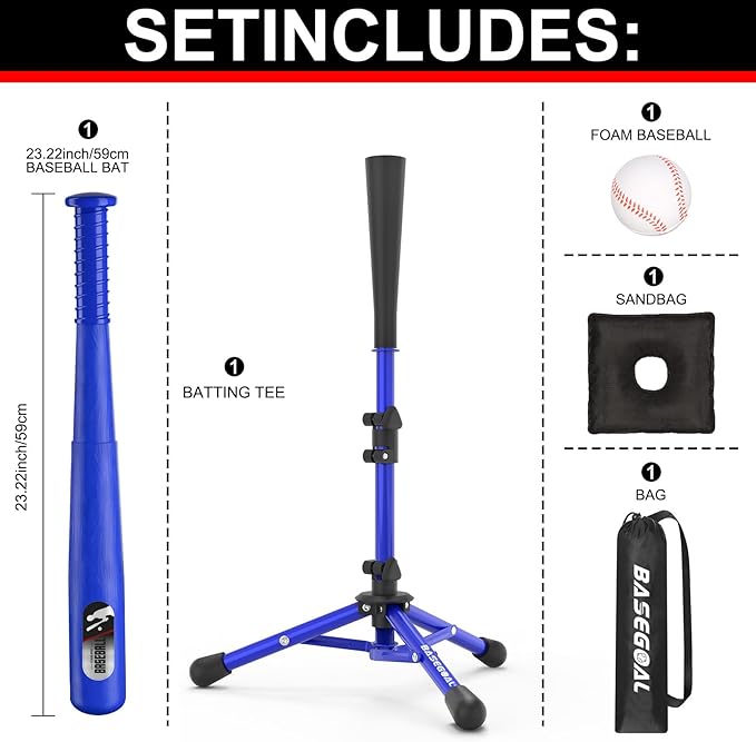 - 3.【DURABLE-HIGH QUALITY WRAPPED RUBBER】Youth Hitting Tee,Every BaseGoal Tee top is hand rolled,Strong and durable,Which is suitable for kinds of balls, with good elasticity, like baseball, softball, training ball and to have the real hitting feelings with special size design.