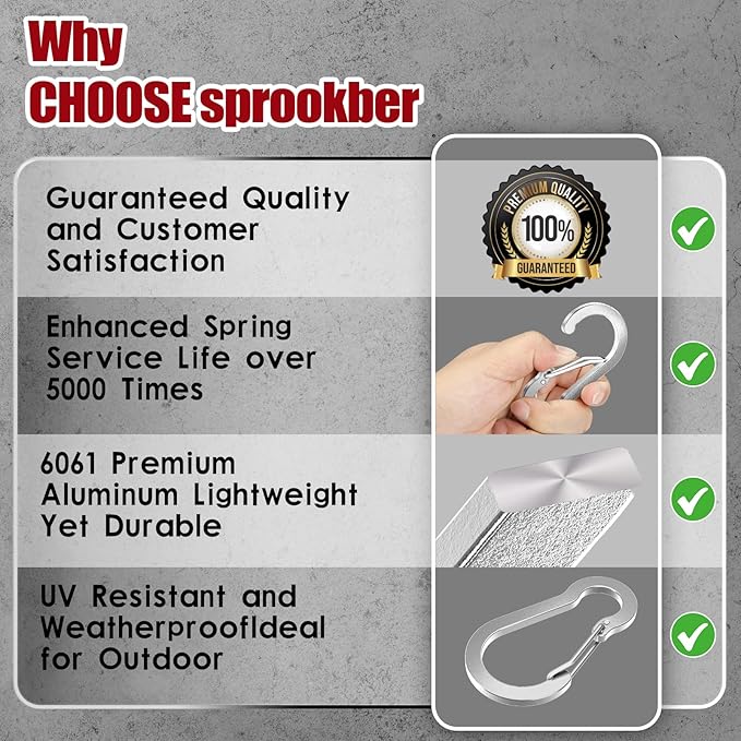 - Aircraft-Grade 6061 Aluminum & Anti-Rust:Crafted from aerospace-grade 6061 aluminum alloy, these carabiners Clip withstand 240LB load capacity while remaining lightweight. Oxidation-coated finish ensures fade-proof and rust-resistant performance, ideal for harsh outdoor environments