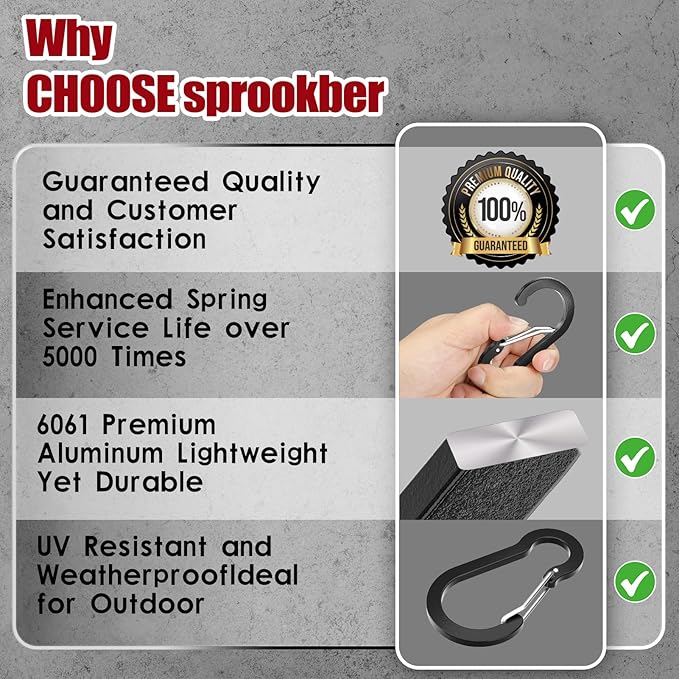 - Aircraft-Grade 6061 Aluminum & Anti-Rust:Crafted from aerospace-grade 6061 aluminum alloy, these carabiners Clip withstand 240LB load capacity while remaining lightweight. Oxidation-coated finish ensures fade-proof and rust-resistant performance, ideal for harsh outdoor environments