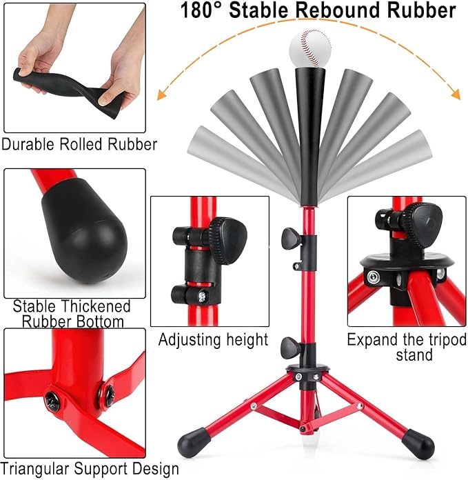 - 【Baseball Softball Tee Kit】Our baseball training tee set includes a 1set x black tripod Tee, 1 x flexible rubber and 1 x carry bag. softball hitting tee is available in black and red for you to choose.