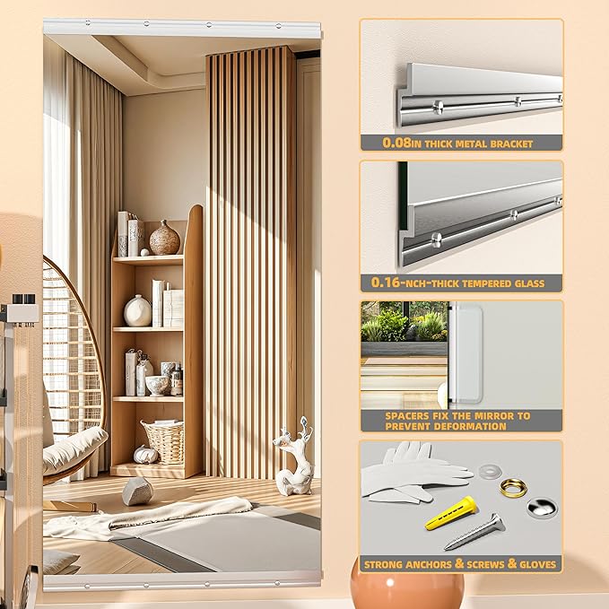 - Designed for High-Energy Spaces: Made with shatter-resistant tempered glass, this Hasipu full-length mirror ensures maximum safety and toughness. Perfect for home gyms, yoga studios, and dance rooms—it withstands impact and prevents hazardous breakage.