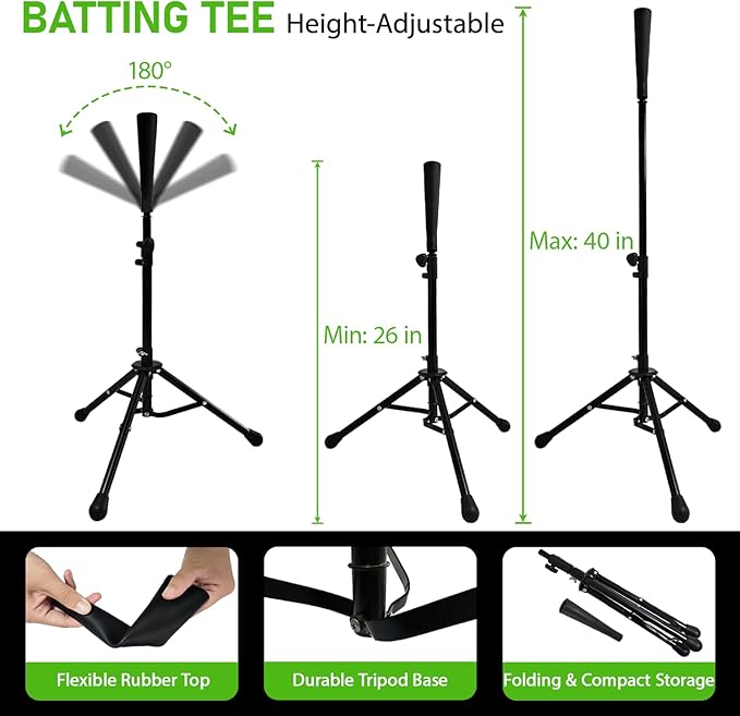 - ADJUSTABLE DESIGN: Height-adjustable batting tee allows players of different sizes to practice their swing mechanics and perfect their hitting technique