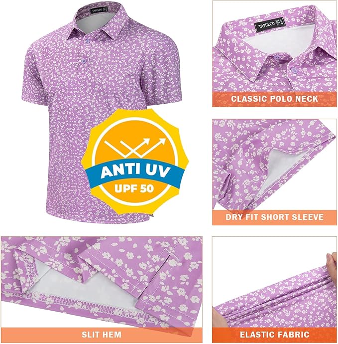 TAPULCO Mens Quick Dry Polo Shirts Camouflage Pattern Performance Athletic Lightweight Breathable Casual Golf Tshirts