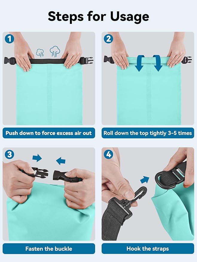 • Multifunctional - Equipped with adjustable shoulder straps for shoulder carrying and backpack, our dry bag is very convenient for different occasions like boating, rafting, kayaking, hiking, camping, fishing, mountaineering, etc. The lightweight dry bag won't weigh down your arms or shoulders