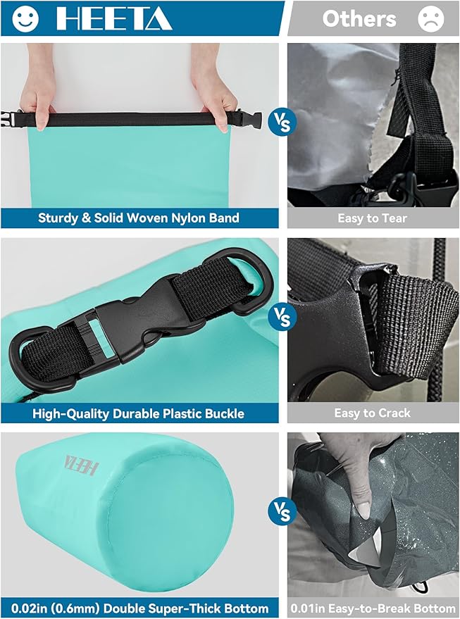 • Durable - Made of 0.02 in (0.5 mm) thick upgraded wear-resistant PVC material, it's suitable for all kinds of outdoor activities. Waterproof bag is well adapted to various weather and environment