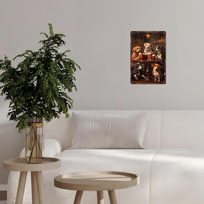 Vintage Dogs Tin Sign Retro Beer Metal Poster Funny Dog Lovers Wall Art Wall Decor for Kitchen Man Cave Shop Bar 12 * 8inch