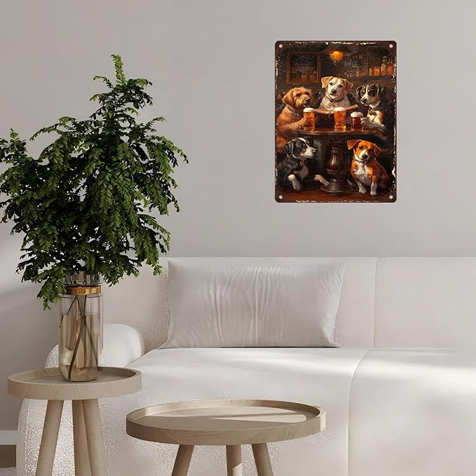 Vintage Dogs Tin Sign Retro Beer Metal Poster Funny Dog Lovers Wall Art Wall Decor for Kitchen Man Cave Shop Bar 12 * 16inch
