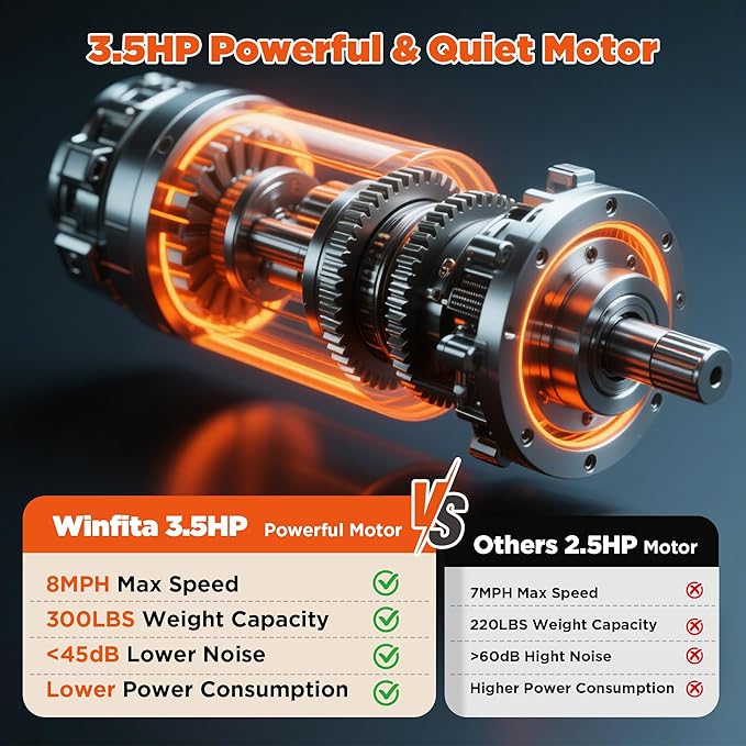 - 12% Auto Incline: Challenge yourself with 12 levels of automatic incline that simulate real outdoor terrain. Whether you're aiming to burn more calories, build leg strength, or improve endurance, winfita treadmill with incline makes it easy to adjust intensity with a press for a more effective workout.