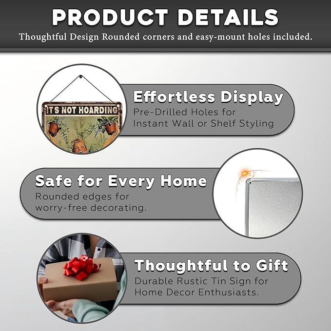 Retro Garden Metal Sign It's Not Hoarding If It's Plants Vintage Gardening Decor Metal Plaque for Parlor Yard Oasis Backyard Patio Greenhouse Decoration 12 * 8inch