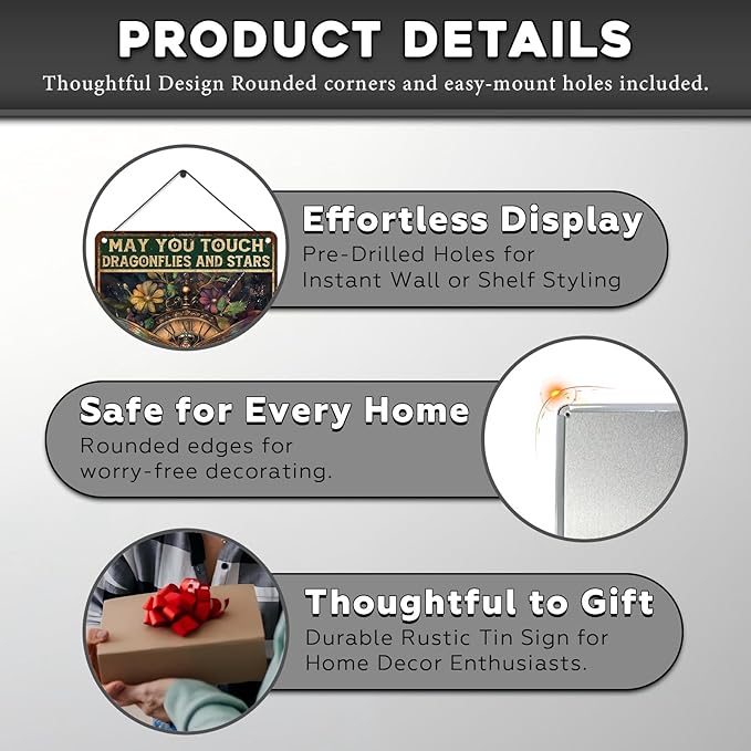 Vintage Dragonfly Tin Sign May You Touch Dragonflies And Stars Dance With Fairies And Talk To The Moon Retro Metal Poster Funny Wall Art Cafe Toilet Farm Room Garden Plaque Outdoor 12 * 8inch