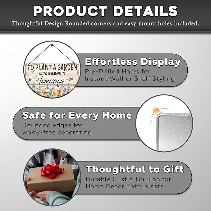 Gardening Vintage Metal Sign Plaque To Plant A Garden is To Believe Tomorrow Sign for Home Greenhouse Living Room Bedroom Outdoor Decor 12 * 8inch