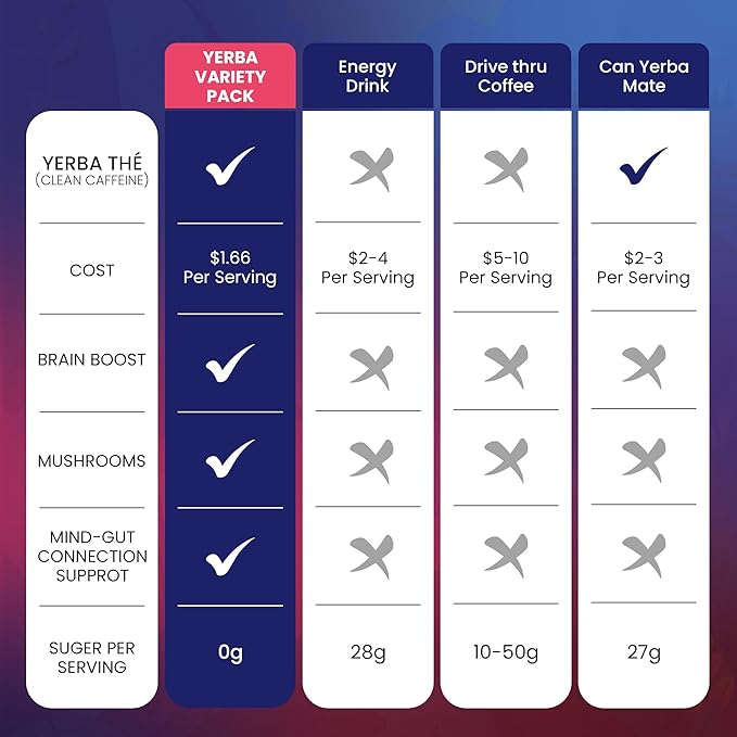 - Sugar-Free, High Power Clean Energy Drink: Stay energized without the crash or guilt – our yerba mate sugar-free formula is crafted for clean living. As a top choice in clean energy drinks, this yerba energy drink boosts vitality naturally. Trusted by those who want a smarter yerba mate drink that doubles as a brain fog supplement and gut health supporter.