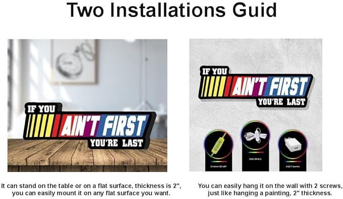 - [Motivational Design] Features the bold and inspiring quote, "If You Ain't First You Are Last," making it the perfect neon sign to keep you motivated and focused during your workouts. The striking typography and vibrant neon lights add energy to your fitness space.