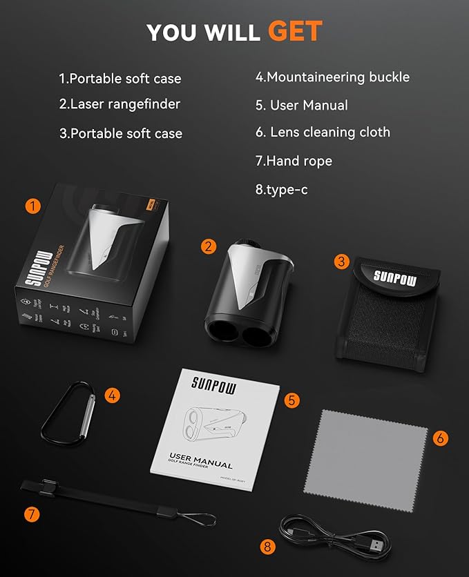 - Ultimate Precision, Hit the Mark with One Strike:The SUNPOW golf rangefinder boasts a distance measurement capability of 1000 yards and an accuracy of ±1 yard. With a 0.5S rapid response, 7x magnification and a high-definition transmission LCD display, you can obtain clear, stable and real-time distance data whether you are locking onto the flagpole on the green or tracking distant prey, laying the foundation for a perfect shot.