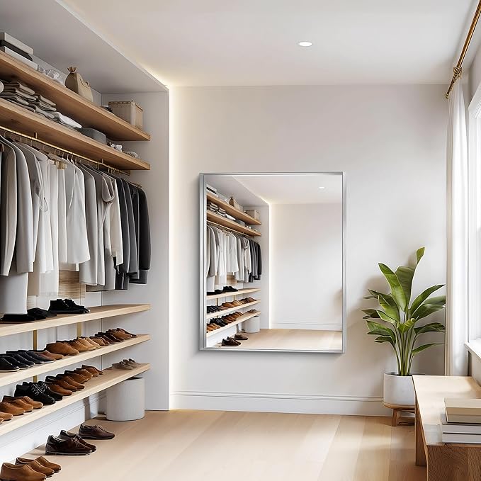 - Sleek & Sturdy Aluminum Alloy Frame This elegant silver bathroom mirror features a lightweight yet durable aluminum alloy frame, designed to resist deformation, chipping, and corrosion. The slim metallic profile adds a modern touch, elevating your space with a luxurious finish. Perfect as a wall-mounted or hanging mirror, it combines strength, style, and longevity