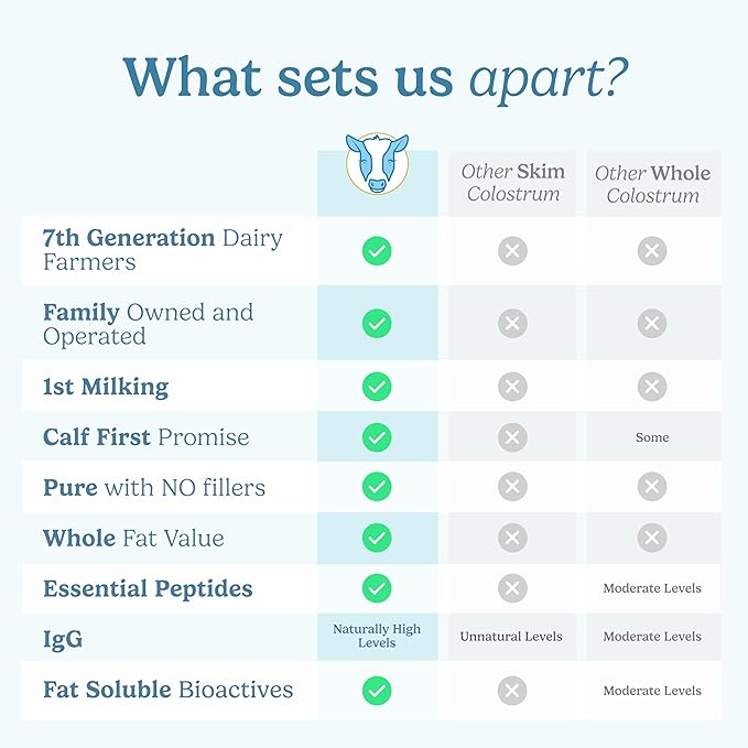 - Whole Colostrum Supplement: Embrace the purity of nature with our 100% whole colostrum powder, untouched and complete as nature intended. Unlike many competitors who remove beneficial fats or introduce additives to "spike IgG's" our product remains unaltered, delivering a full spectrum of essential nutrients. WonderCow Bovine Colostrum offers a natural blend of peptide rich fats, growth factors, essential amino acids, proteins, and immunoglobulins—all vital components for thriving health.