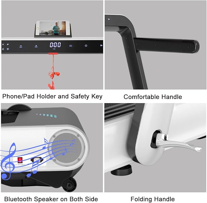 - ๐ ๐ผ๐ฟ๐ฒ ๐๐ป๐๐ฒ๐ฟ๐๐ฎ๐ถ๐ป๐บ๐ฒ๐ป๐: Coming with device holder and built-in speakers, this folding treadmill allows you to have more fund while exercise. Besides, you could also have professional courses and share your exercise data to community via Gymax APP.