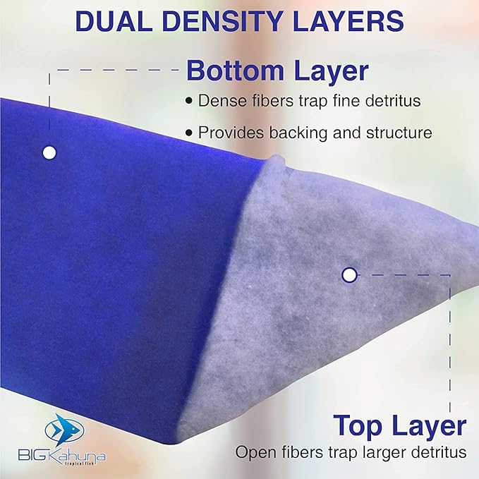 - Optimal Choice for Your Tank: If you want to keep your tank or pond crystal clean, our dual density filter pad is what you need! Thick, versatile and filtration-efficient, this aquarium floss pad keeps the tank clean and smoothly running!