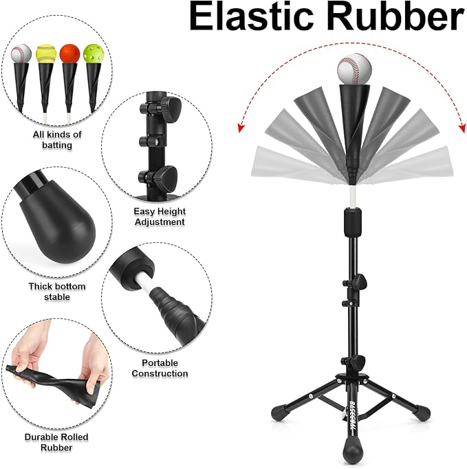 • 3.【DURABLE-HIGH QUALITY WRAPPED RUBBER】Youth Hitting Tee,Every BaseGoal Tee top is hand rolled,Strong and durable,Which is suitable for kinds of balls, with good elasticity, like baseball, softball, training ball and to have the real hitting feelings with special size design.
