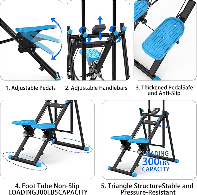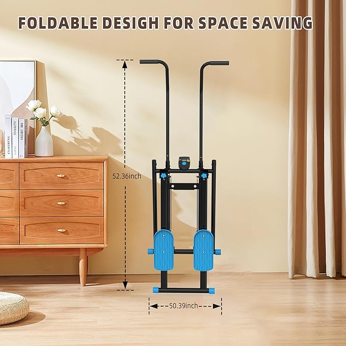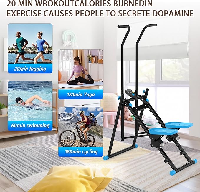 - 【Vertical Climber Machine】The vertical climbing machine is a home fitness equipment that combines a stepper and a stair climber, designed to simulate the natural movement of rock climbing, combining aerobic exercise and muscle strengthening. It specifically targets the legs, glutes, abs, and core areas for intense training to help you achieve your fitness goals