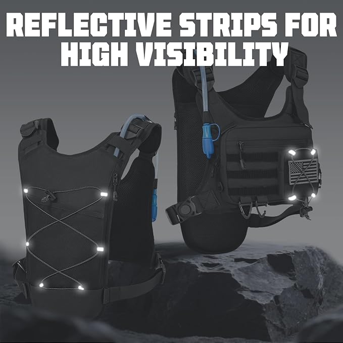Hydration Vest with 2L Water Bladder for Men and Women,Lightweight Adjustable Hydration Backpack,Reflective Running Hydration Chest Bag for Hiking Climbing Cycling