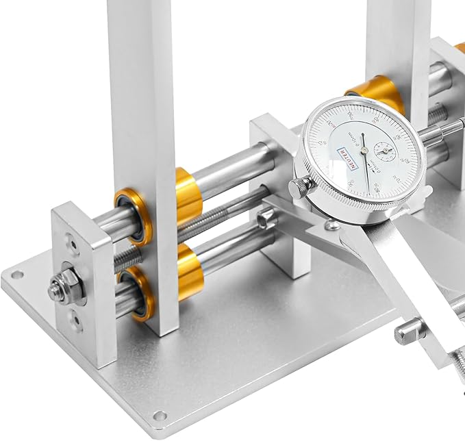 - 【 Detailed Design 】 The practical knobs of the bicycle alignment rim tool are combined with precision bearings, providing an ergonomic, easy-to-use and adjustable experience. The pressure gauge bracket of the bike repair stand with truing is convenient to hold and allows for easy adjustment of the pressure gauge. The fixed rod facilitates the fixation of the drum shaft hub.
