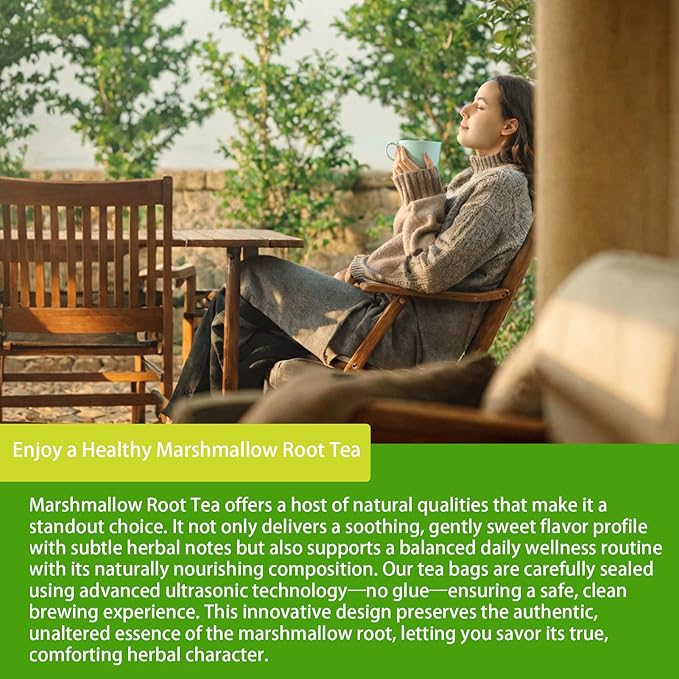 - 【Nature Herbal Tea】: Our marshmallow root tea is made from 100% natural premium marshmallow roots, with no additives, fillers or artificial flavors, delivering a refreshing natural flavor and pure authentic taste.