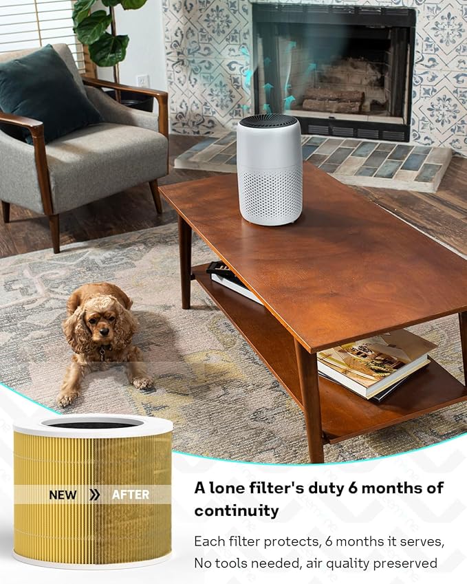 - 【Filtration System】: Core Mini Pet Filter captures 99.97% of airborne particles down to 0.3 microns in size such as fine dust, pet dander. The Pre-Filter, True HEPA Filter, and Activated Carbon Filter work together to absorbs unwanted odors and airborne particles, significantly improving air quality in your living space