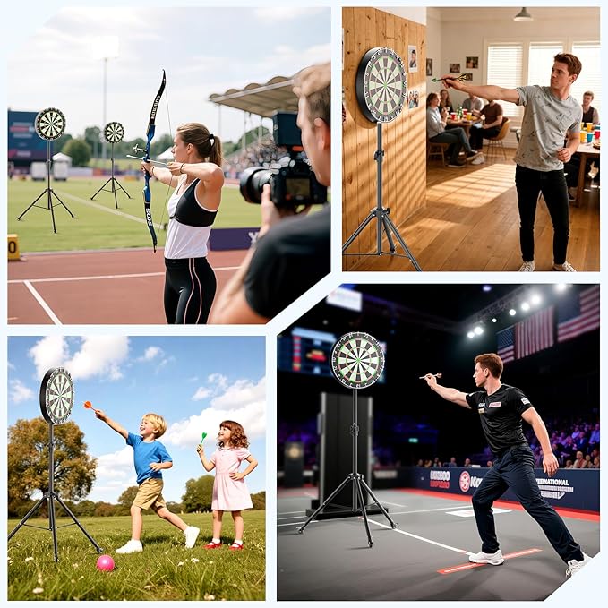 - 【Height adjustable】The dartboard stand features height adjustment with a locking mechanism, enabling perfect dartboard height