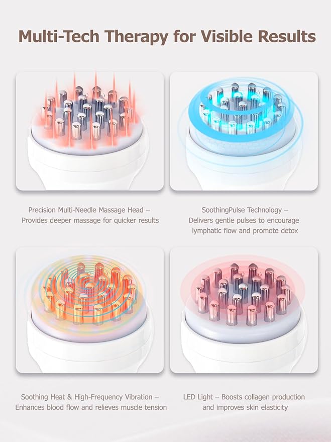 - Advanced Lymphatic Drainage Massage – Reduce Swelling & Detox Naturally Features multi-needle massage and Bioelectric SoothingPulse technology to boost lymphatic flow, reduce bloating and water retention, and support natural detoxification for a lighter, more sculpted body.