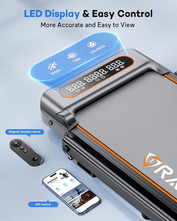 - Smart Control & LED Display: The bright LED screen and fitness app track key metrics - speed, calories, time, and distance - while letting you customize workouts and connect socially. Easily adjust speed anytime with the included remote for seamless workouts.