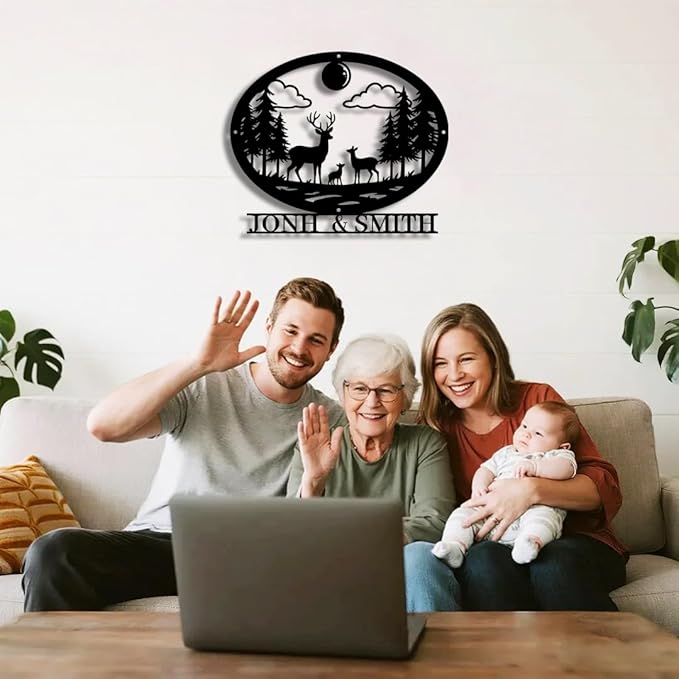 Personalized Forest Deer Metal Name Sign | Custom Metal Signs | Family Wall Art & Split Letter Name | Wedding Gift & Anniversary | Indoor Decor Gift for Women, Men, Wife, Parents, Couple